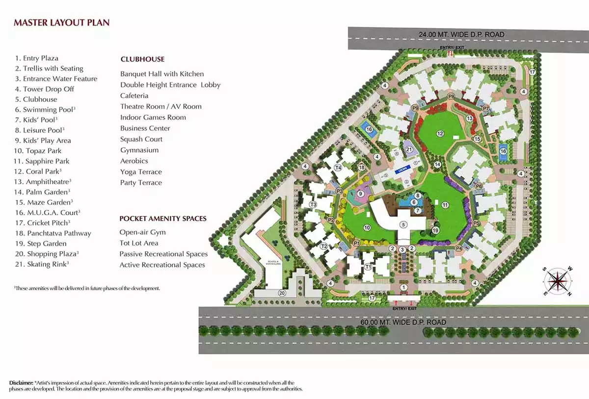 31+ amenities including clubhouse, swimming pool, gym, auditorium, sports courts, and kids’ play zones.